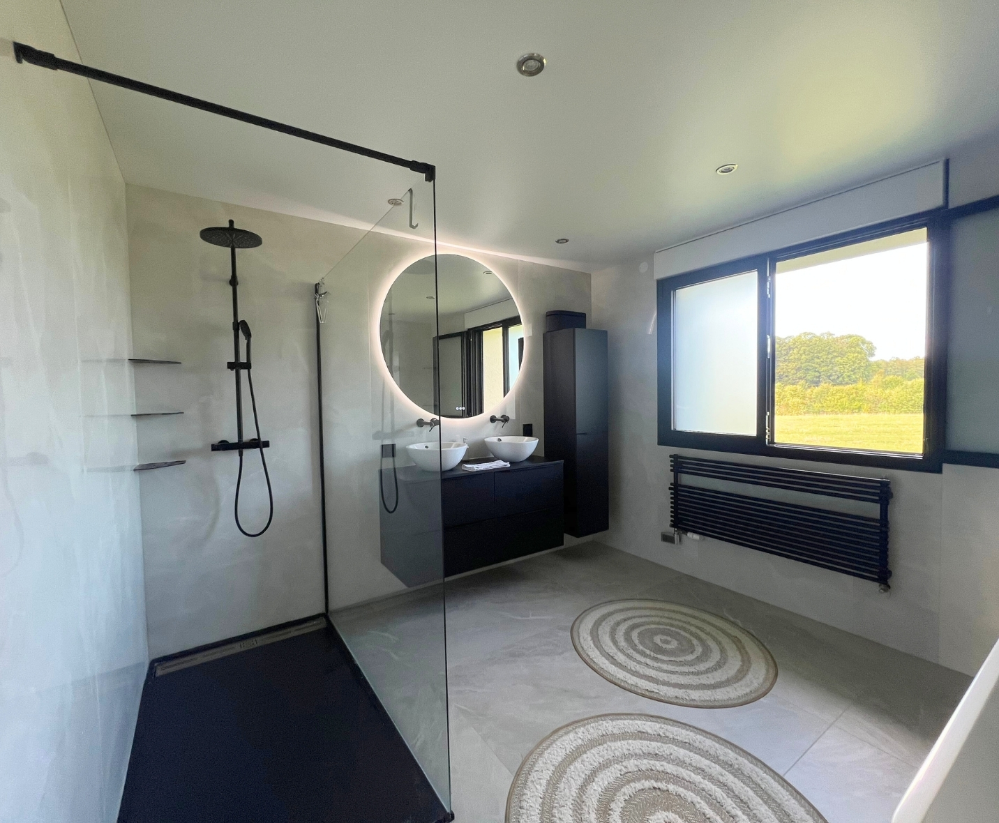 Installations sanitaires complètes : douches, baignoires, lavabos, WC suspendus ou traditionnels.
